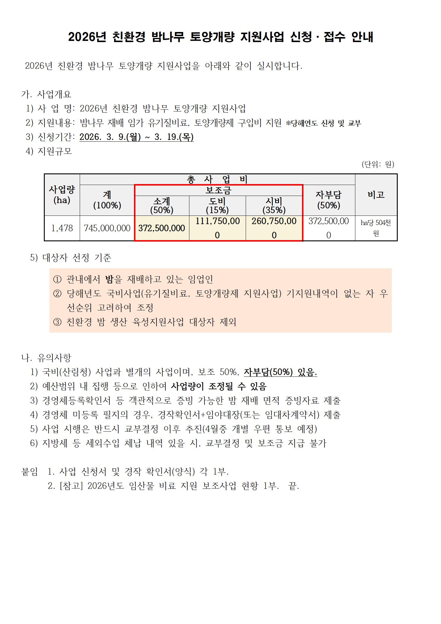 2026년 친환경 밤나무 토양개량 지원사업 신청 안내