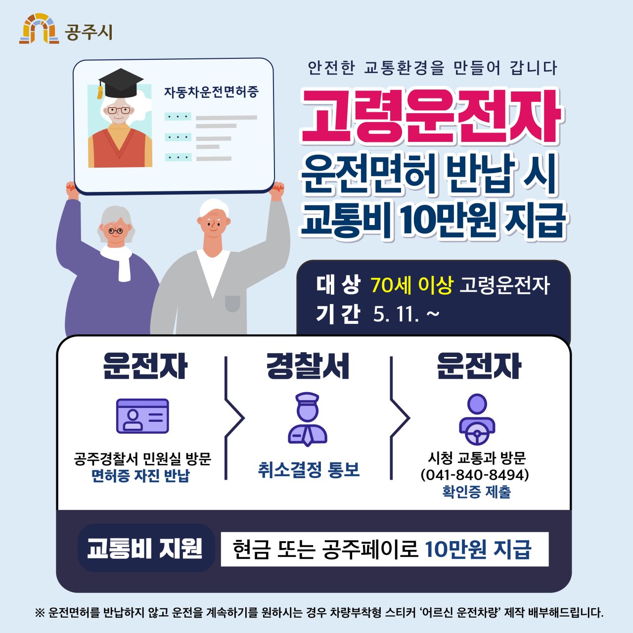 | 922 | 고령운전자(70세이상) 운전면허 자진반납 지원사업」 홍보 | 웅진동 | 53 | 2020-05-11 | 안내문.jpg |