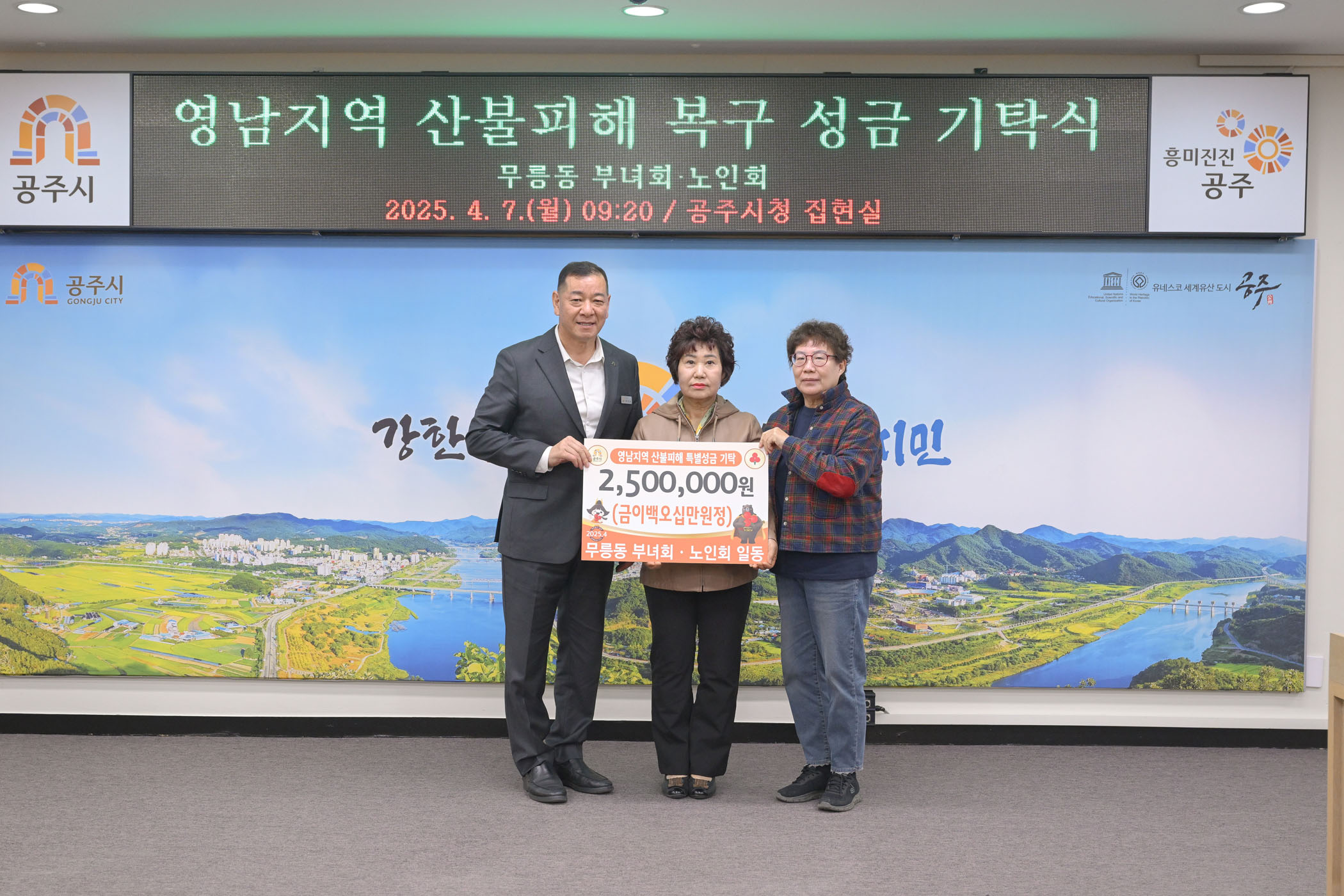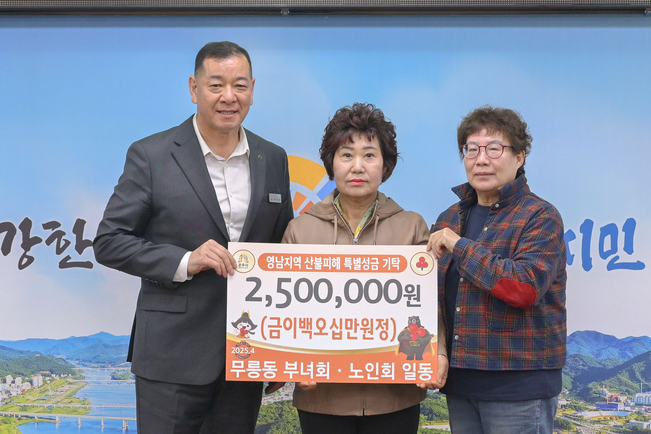 2025년 4월 7일 산불피해지역 성금 전달식 무릉동 부녀회, 노인회 [집현실]