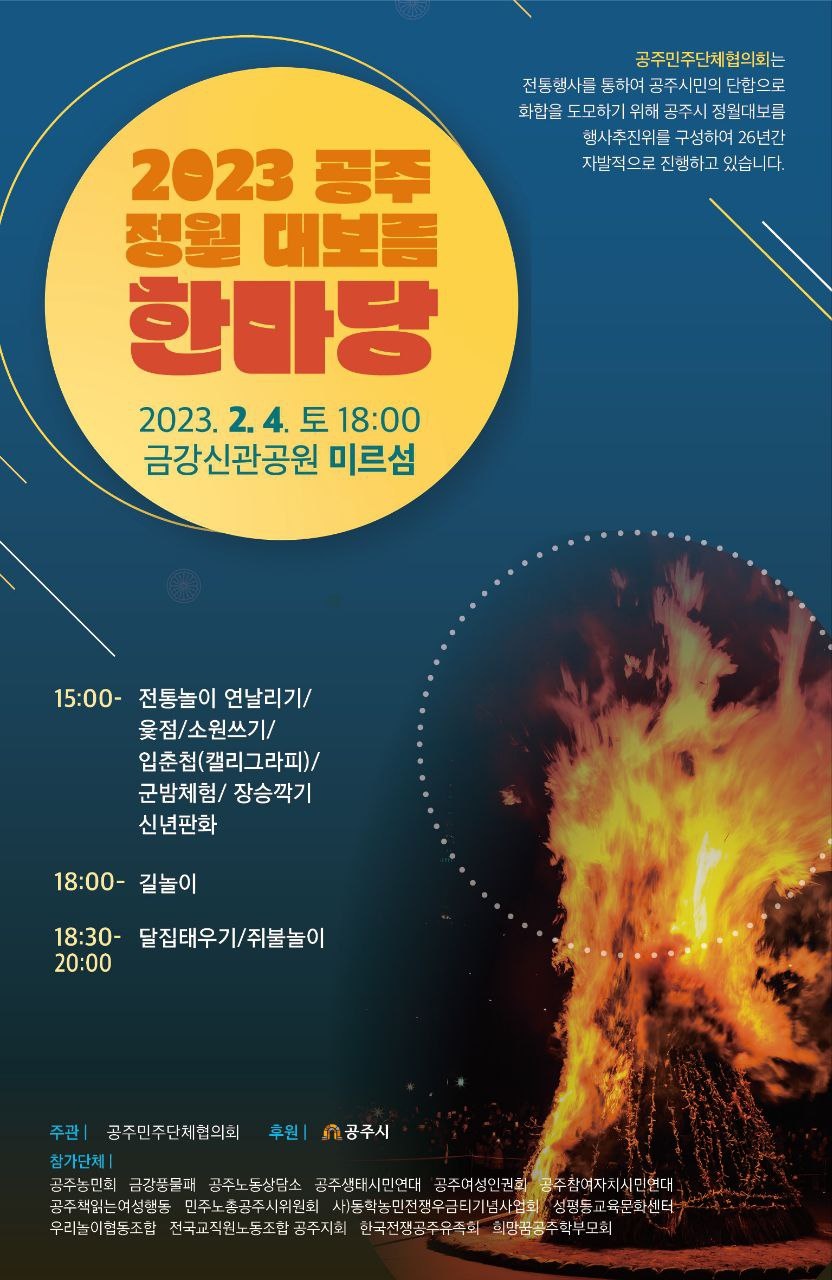 2023 공주 정월 대보름 한마당 행사 - 2월4일(토) 15:00-20:00 /금강신관공원 미르섬