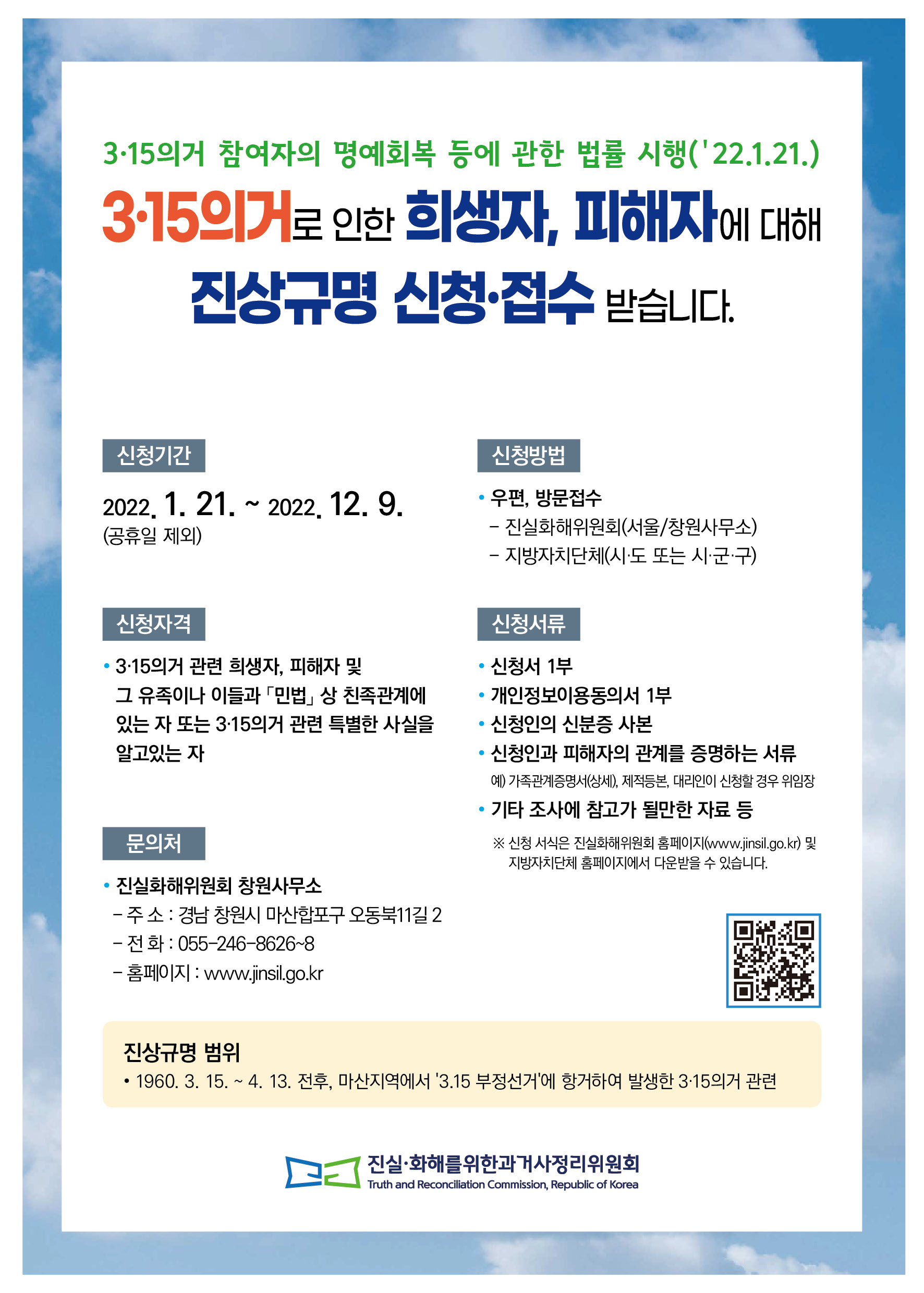진실화해위원회 3·15의거 진상규명 신청 안내