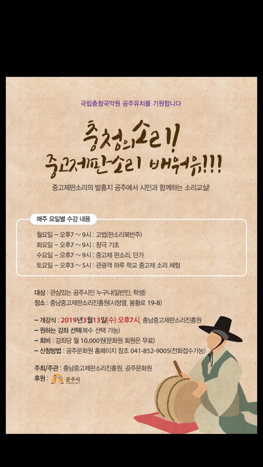 중고제 판소리 교육생 모집(공주문화원)