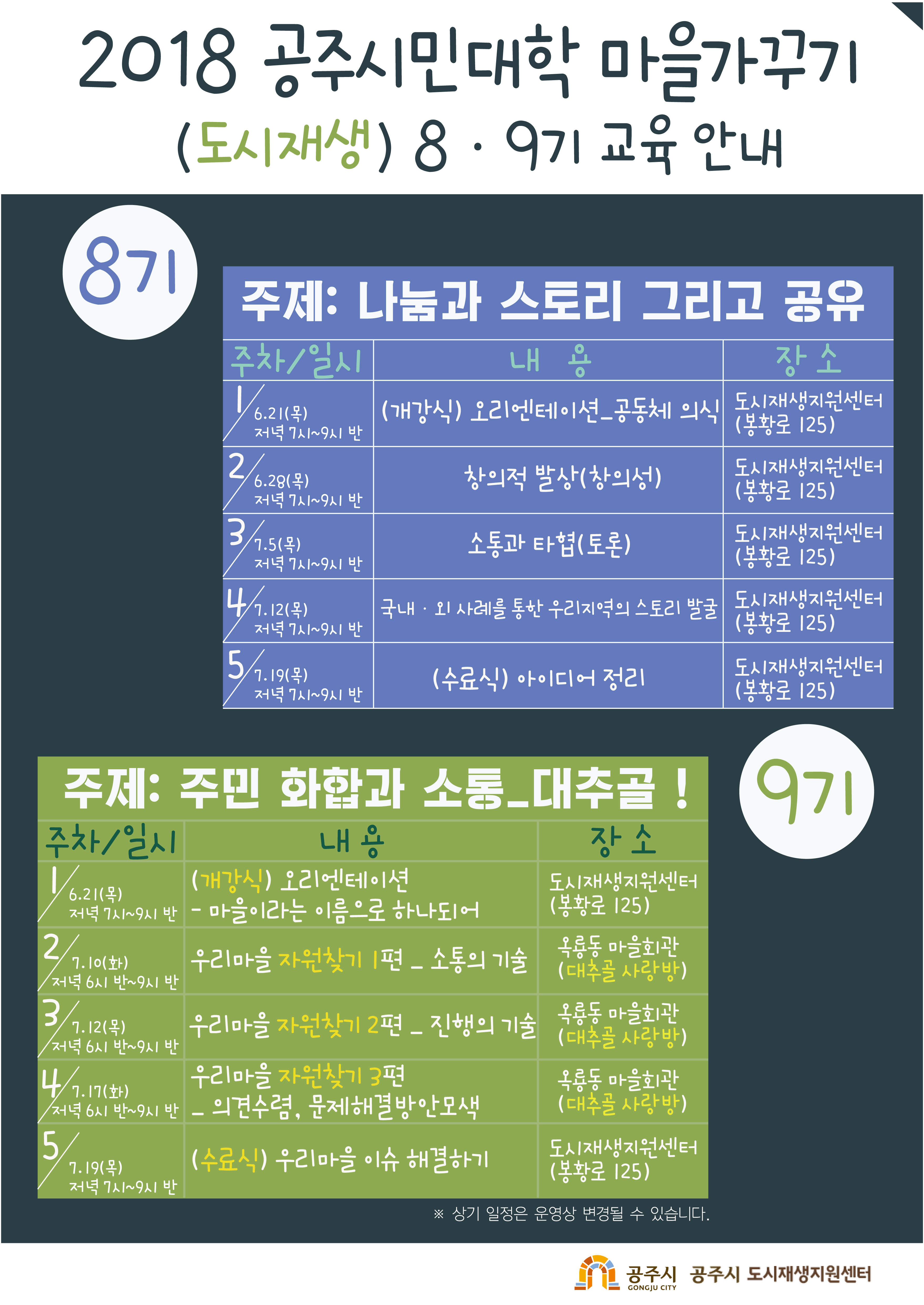 공주시민대학(도시재생 마을가꾸기 분과 8,9기) 교육생을 모집합니다.