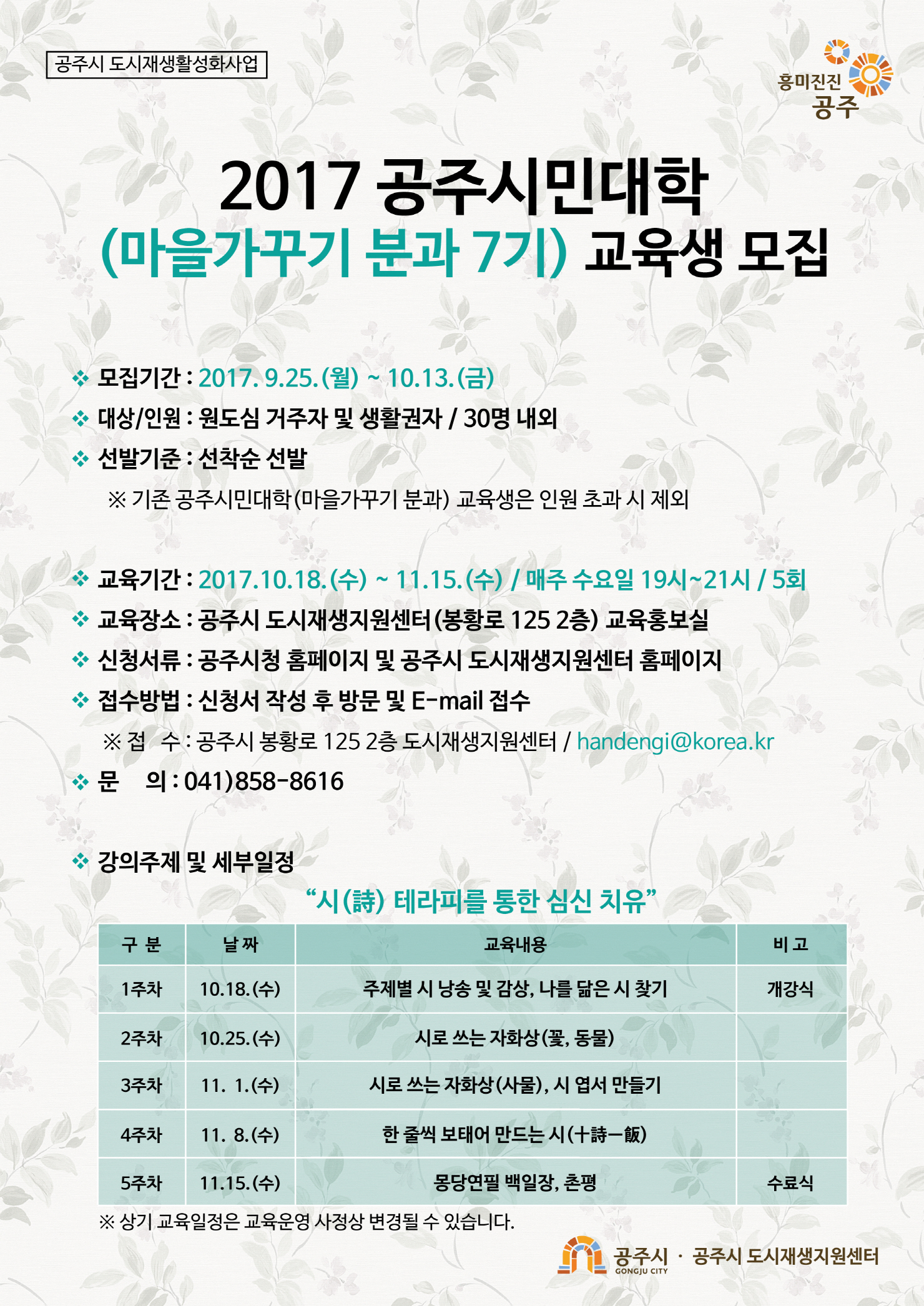 2017 공주시민대학(마을가꾸기 분과 7기) 교육생 모집