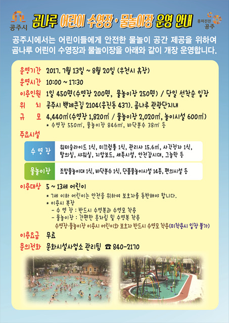 2017년 곰나루 어린이 수영장·물놀이장 개장 운영 알림