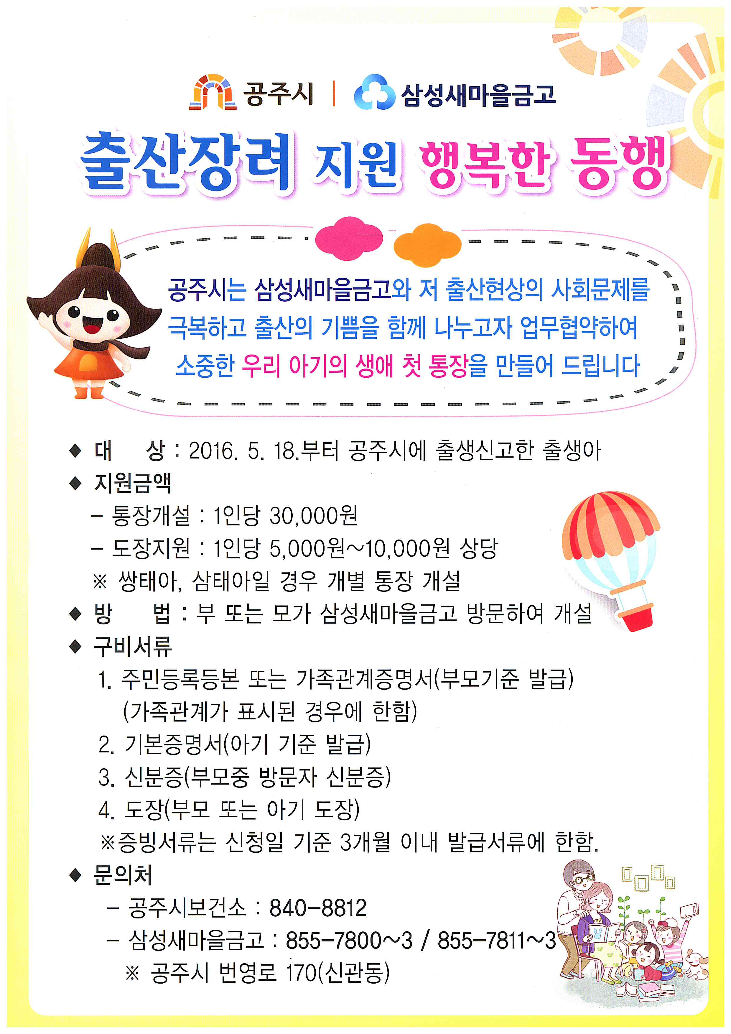 출산장려 지원 행복한 동행(아기의 생애 첫 통장 발급, 도장 지원)