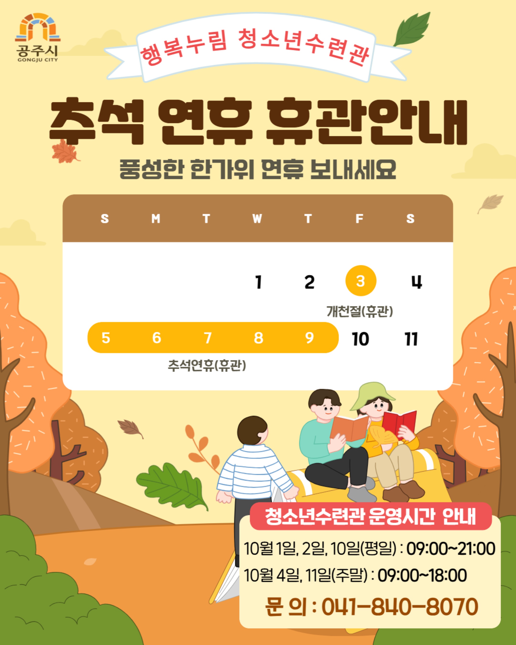 공주시 행복누림 청소년수련관 "2025년 추석연휴 휴관 안내" [청소년수련관]